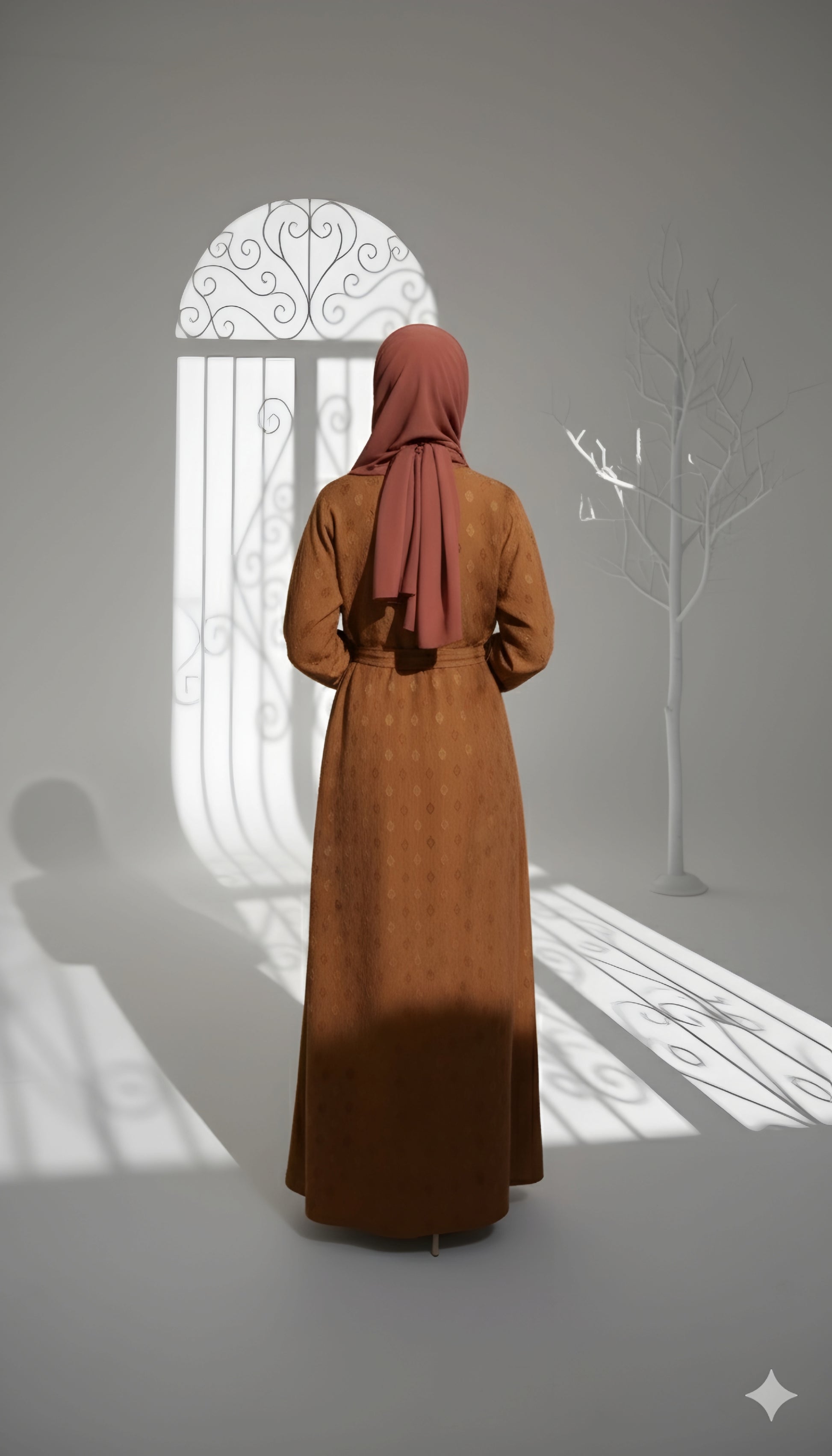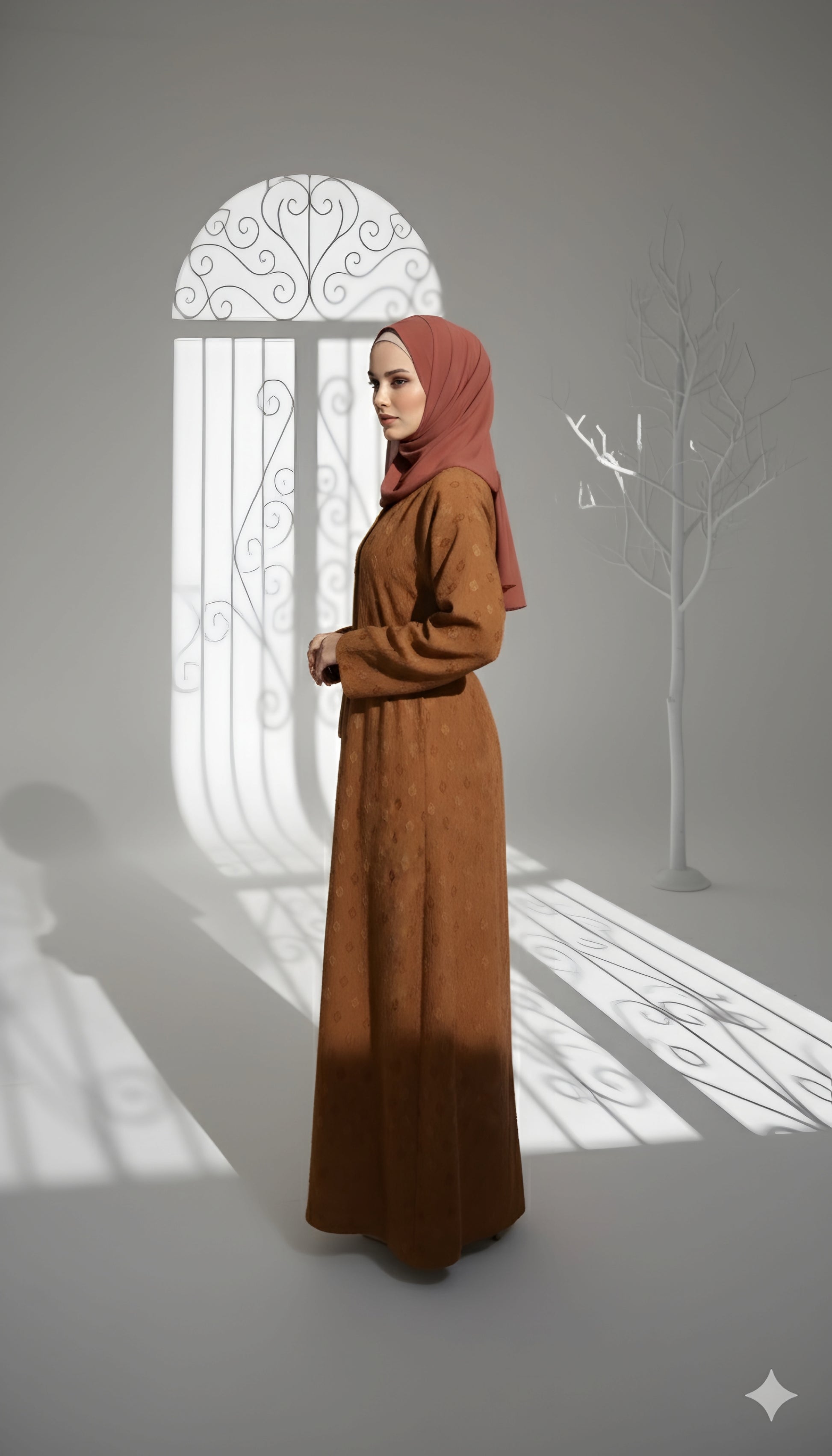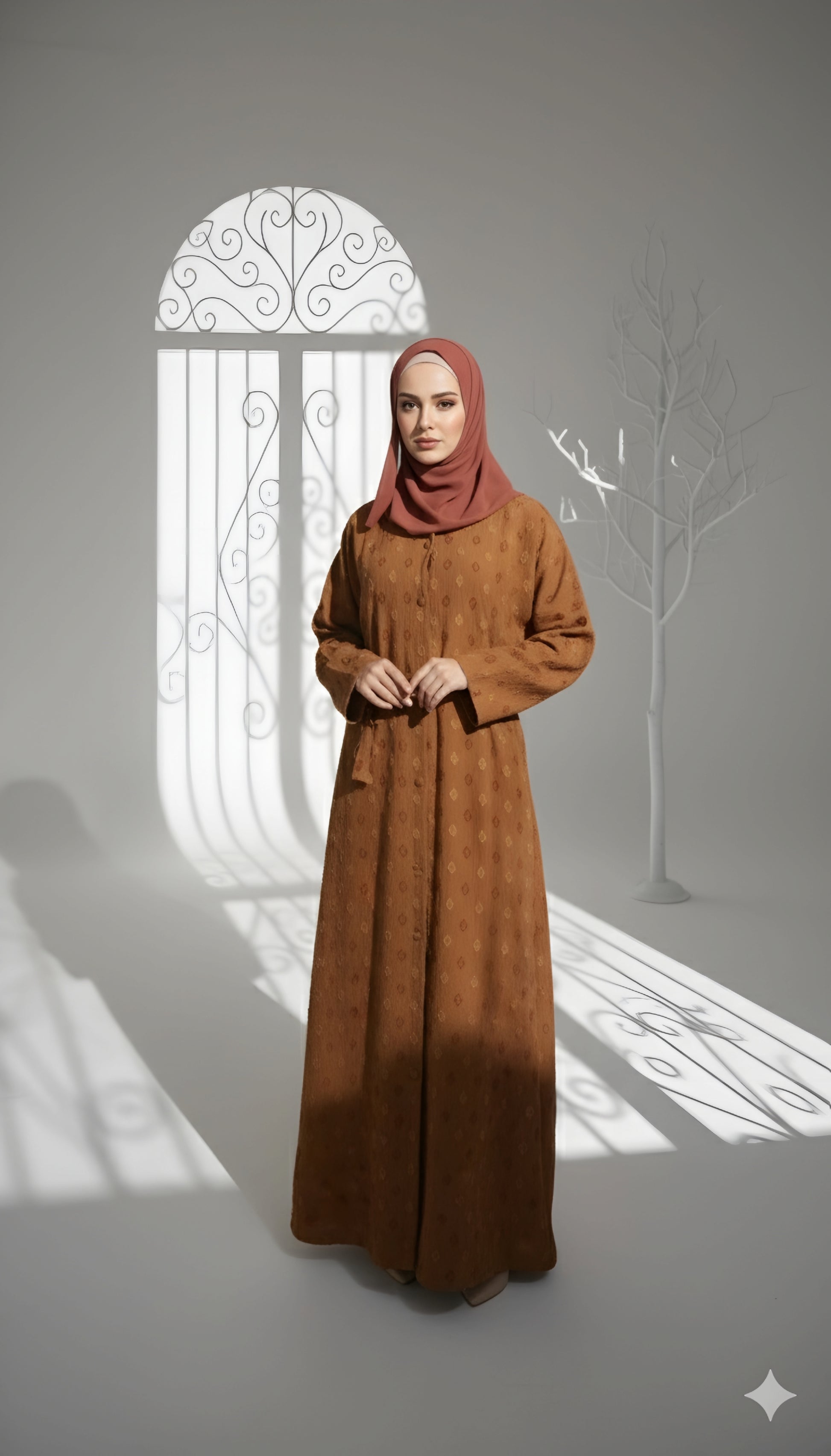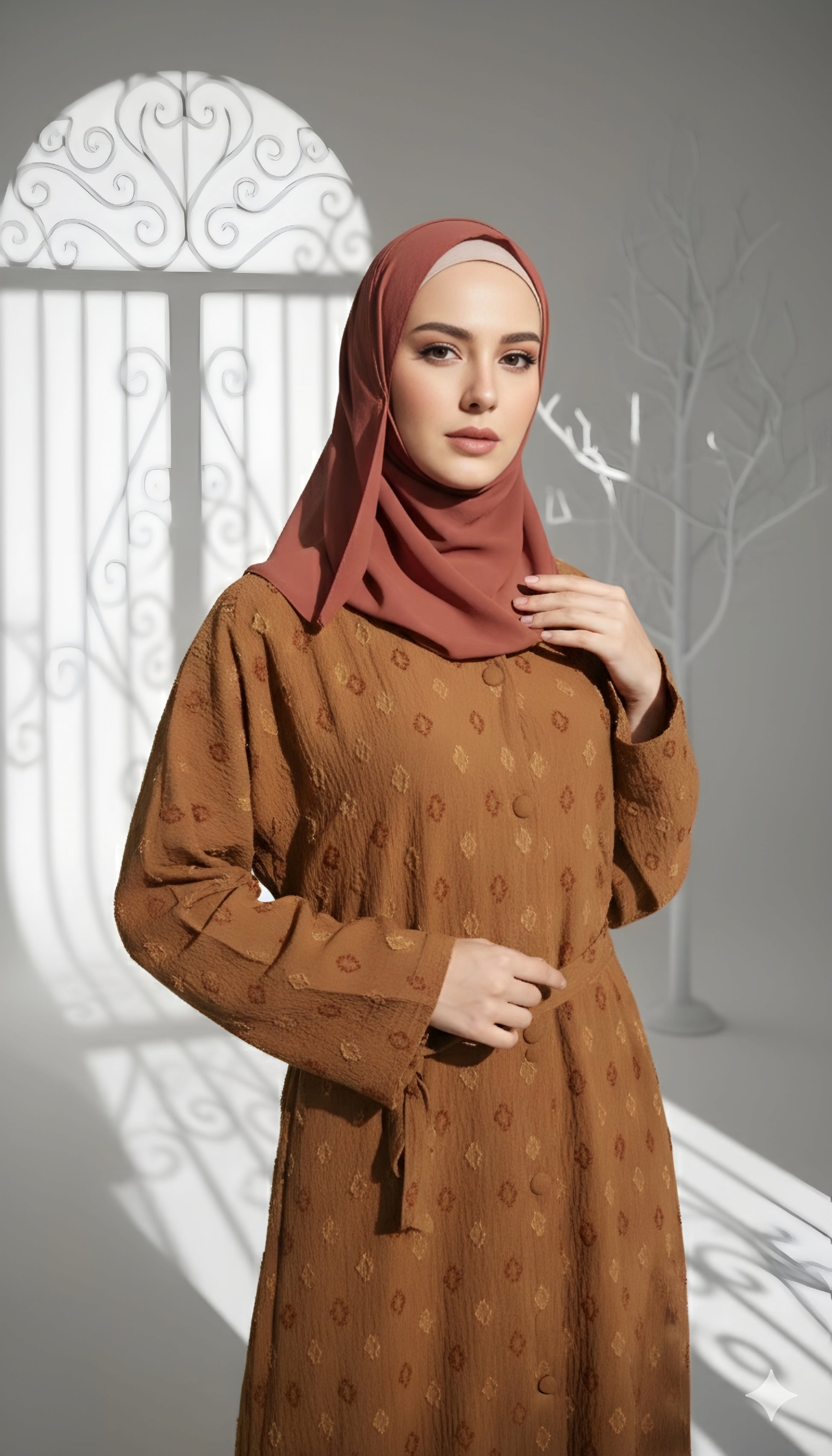 - Complete Look: Includes a contrast hijab for a ready-to-wear outfit with modern flair.