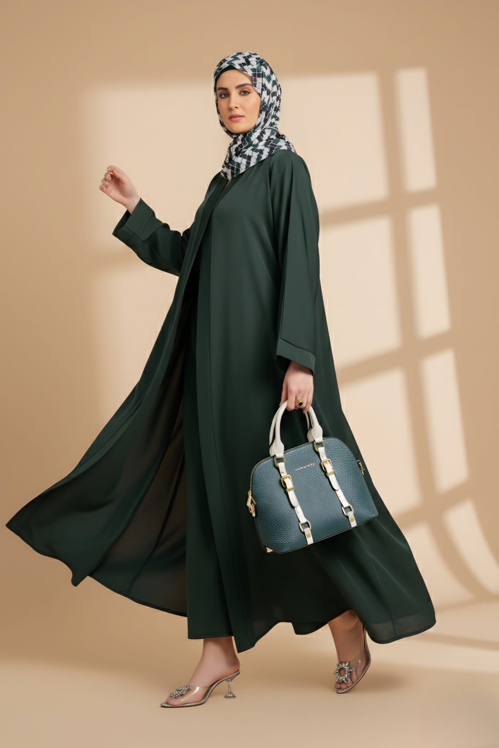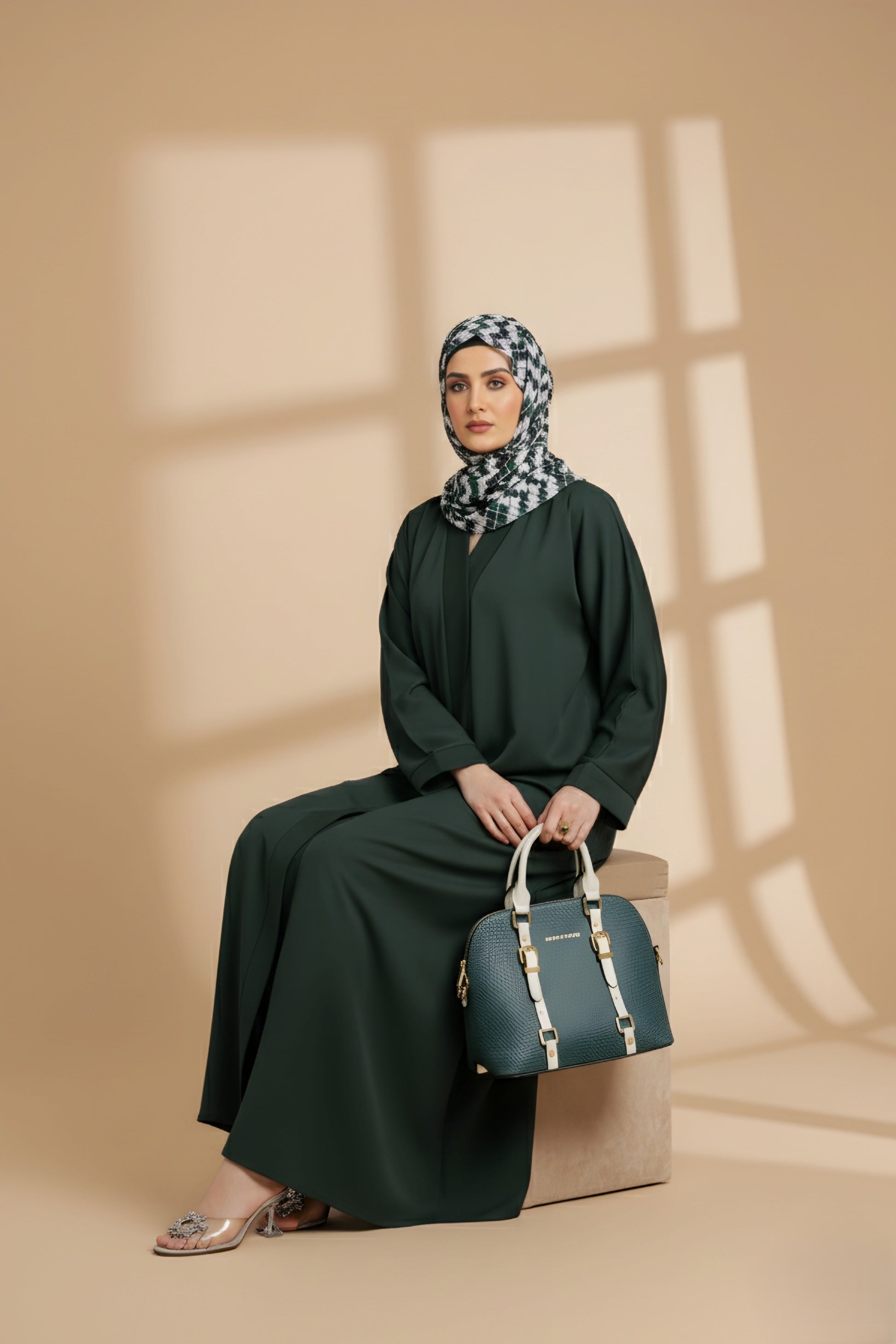 This is a must for your wardrobe collection with our new latest colors which is breathtaking and ultimately gorgeous which is our hot sellers these days front open style abaya and loose pattern sleeves come along with pure Korean digital chiffon Sheila