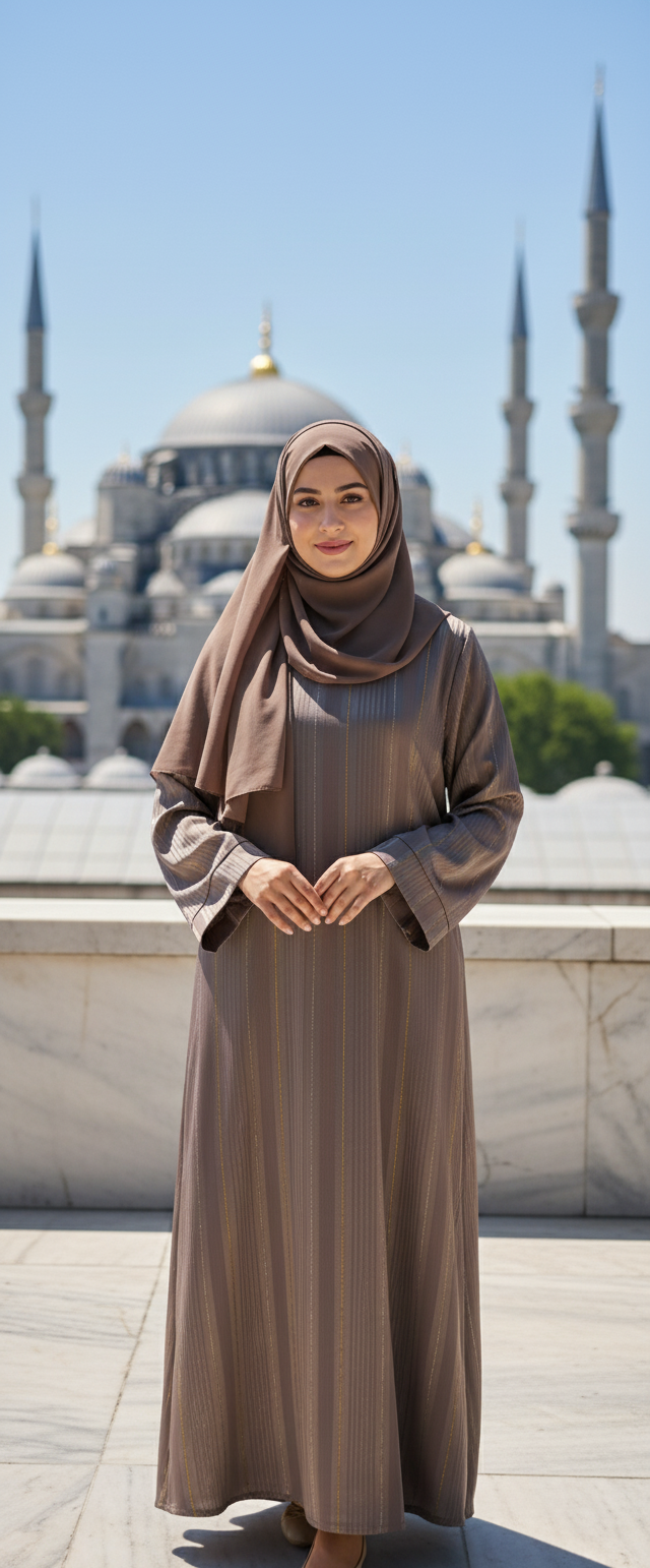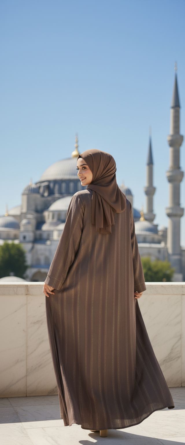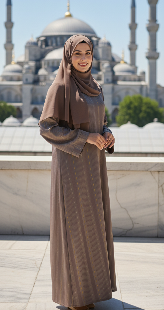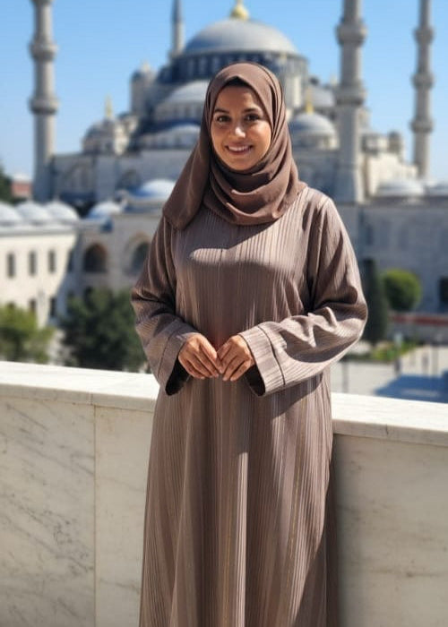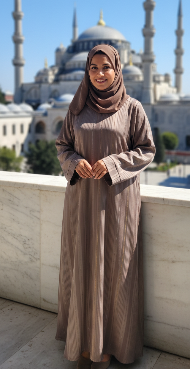 Refined, radiant, and effortlessly elegant — this Zari-Line Abaya is a wardrobe essential for the modern modest woman.