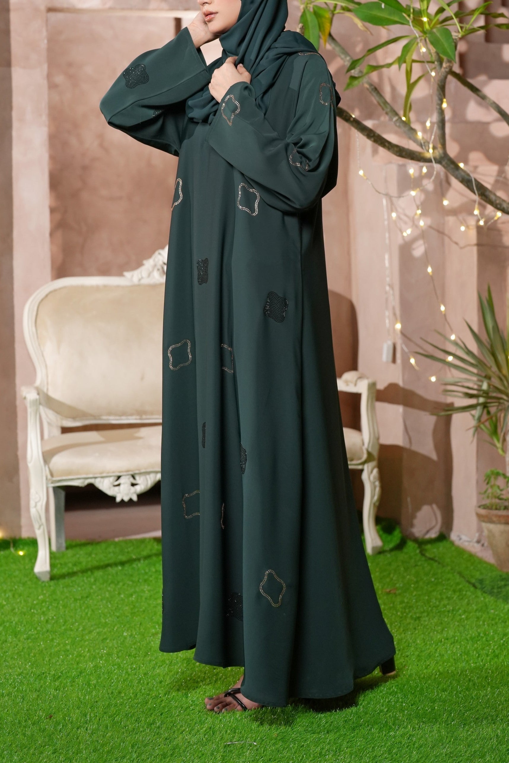 Matching Hijab Included: Comes with a soft Korean Chiffon Sheila in a matching deep green shade for a complete modest ensemble.