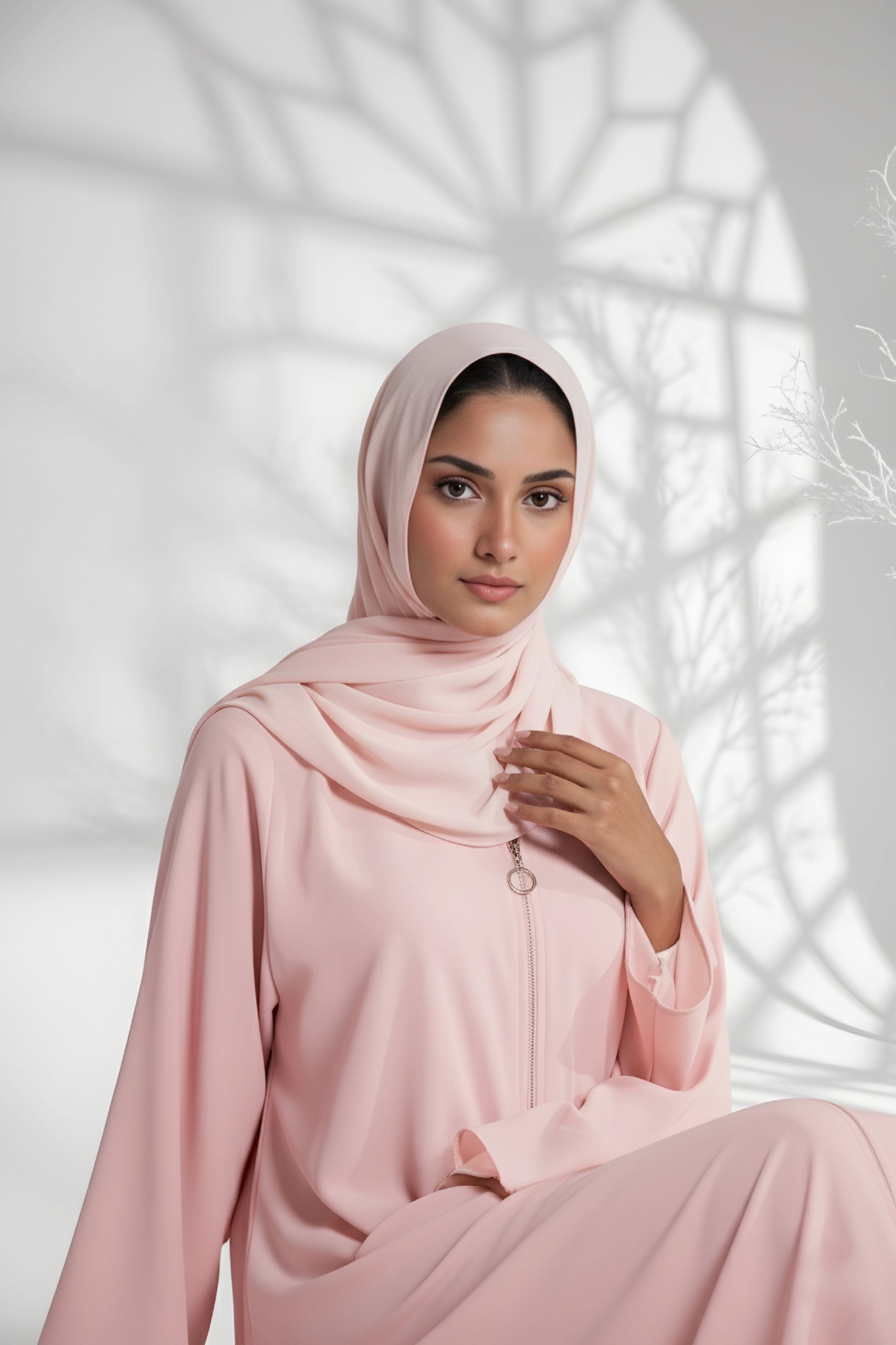 Soft, modern, and effortlessly graceful brings together contemporary design and timeless modesty. Made from premium Nidha fabric, this front-open abaya features a sleek zip closure for everyday ease and a polished finish. The delicate pink hue adds a gentle femininity, perfectly paired with a matching hijab for a cohesive and charming look.