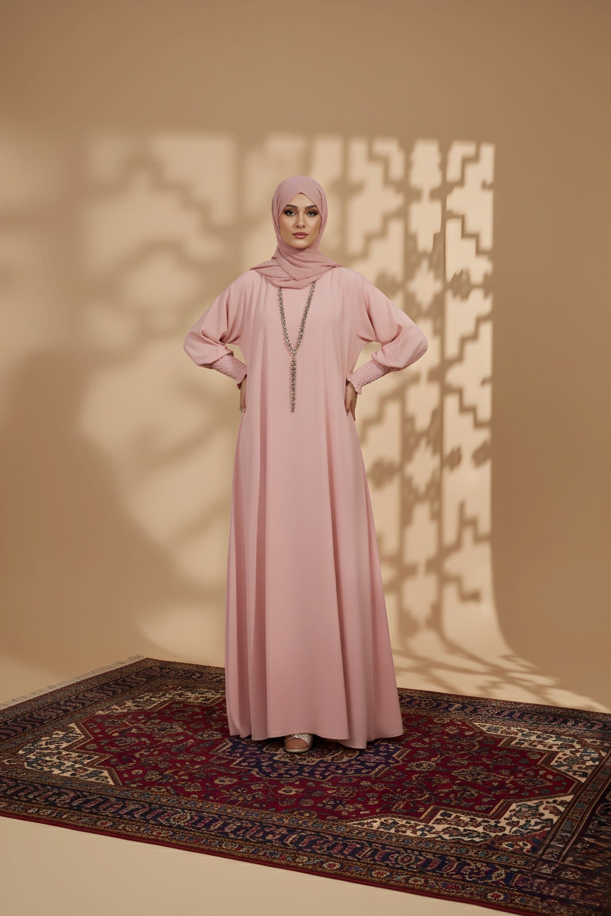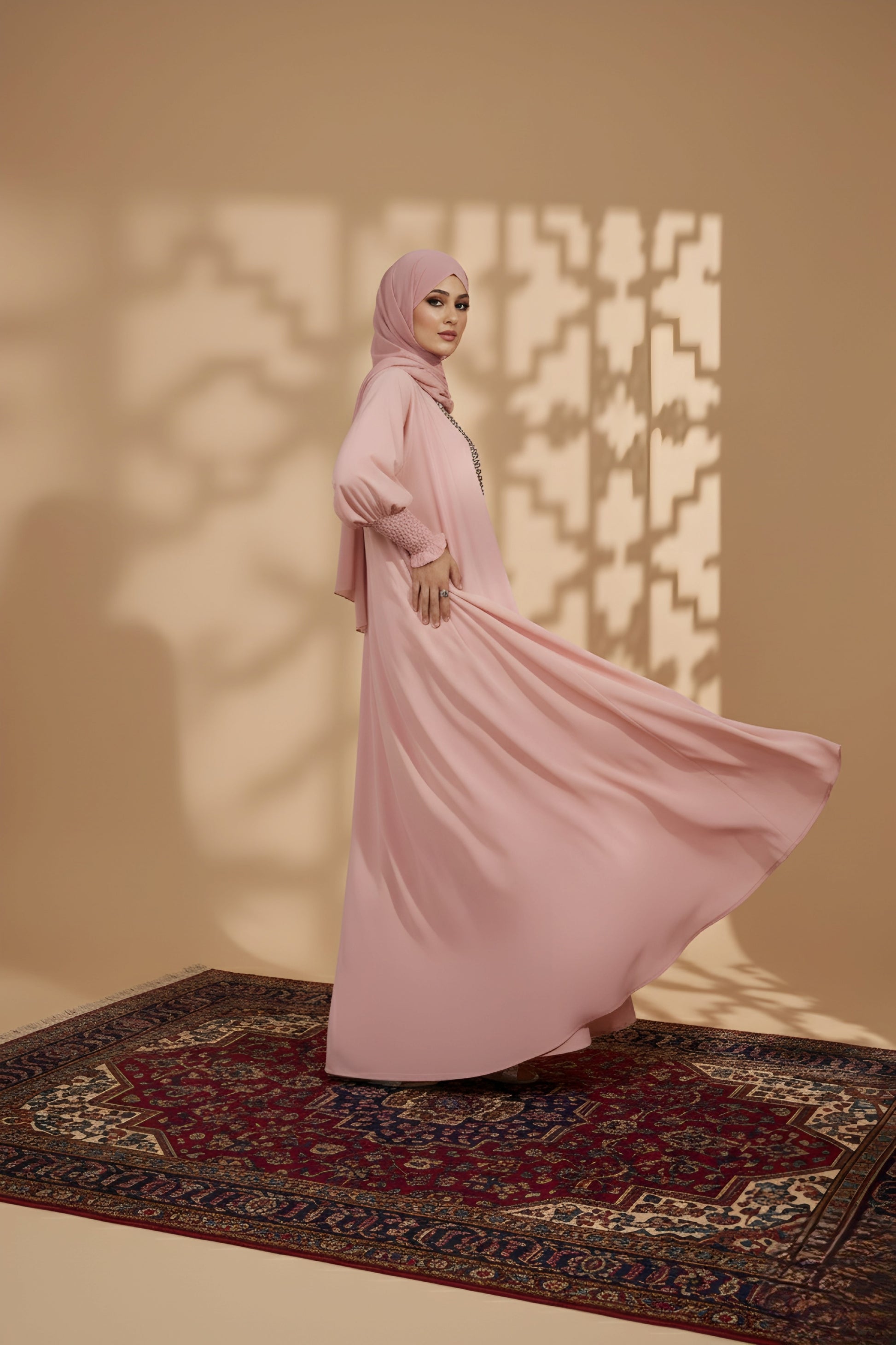 Our beautiful style abaya is best for all day everyday wear, on Turkish CY fabric which is soft and breathable premium Dubai fabric, sober and elegant design which is best to carry and comes along with Contrast Chiffon Sheila