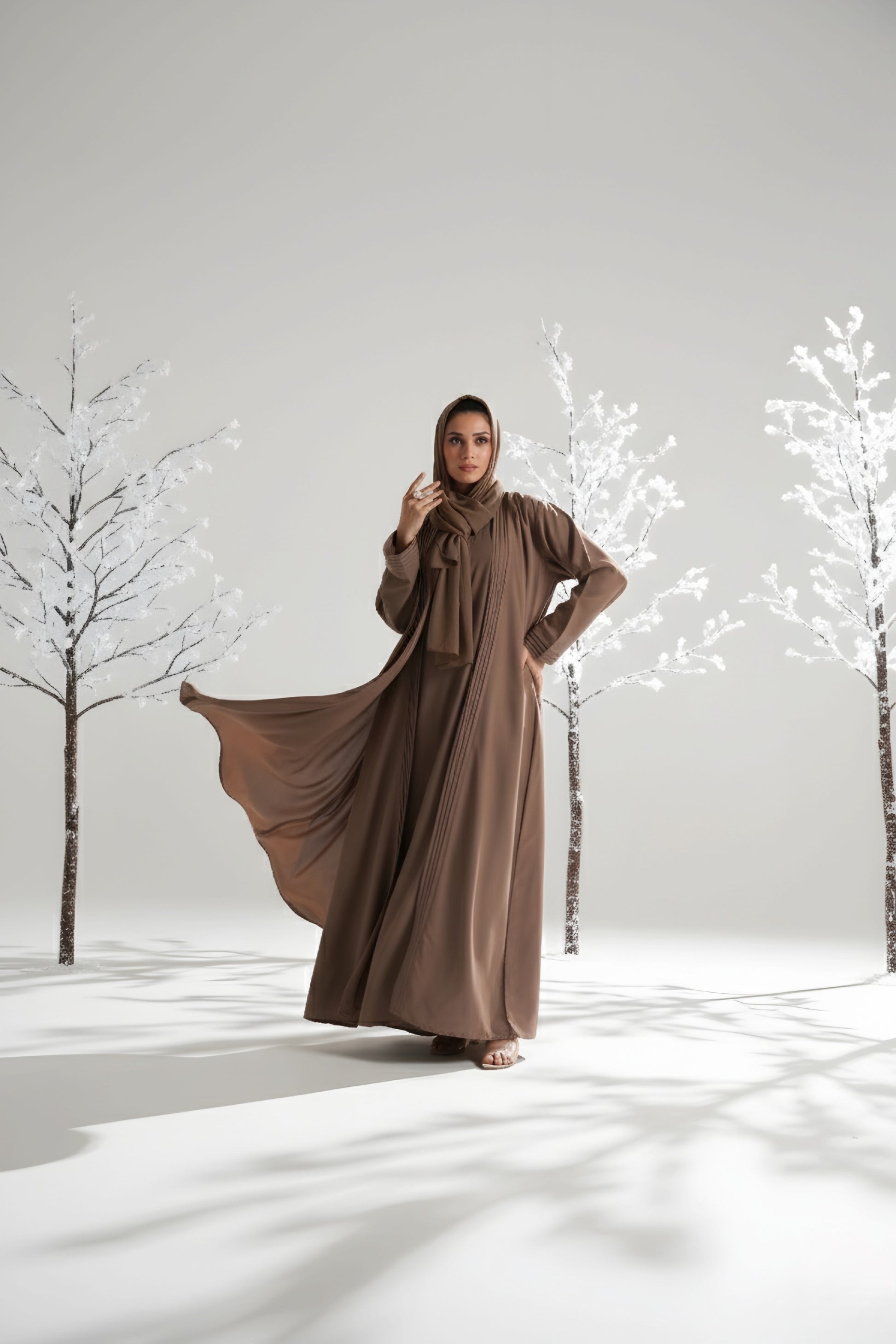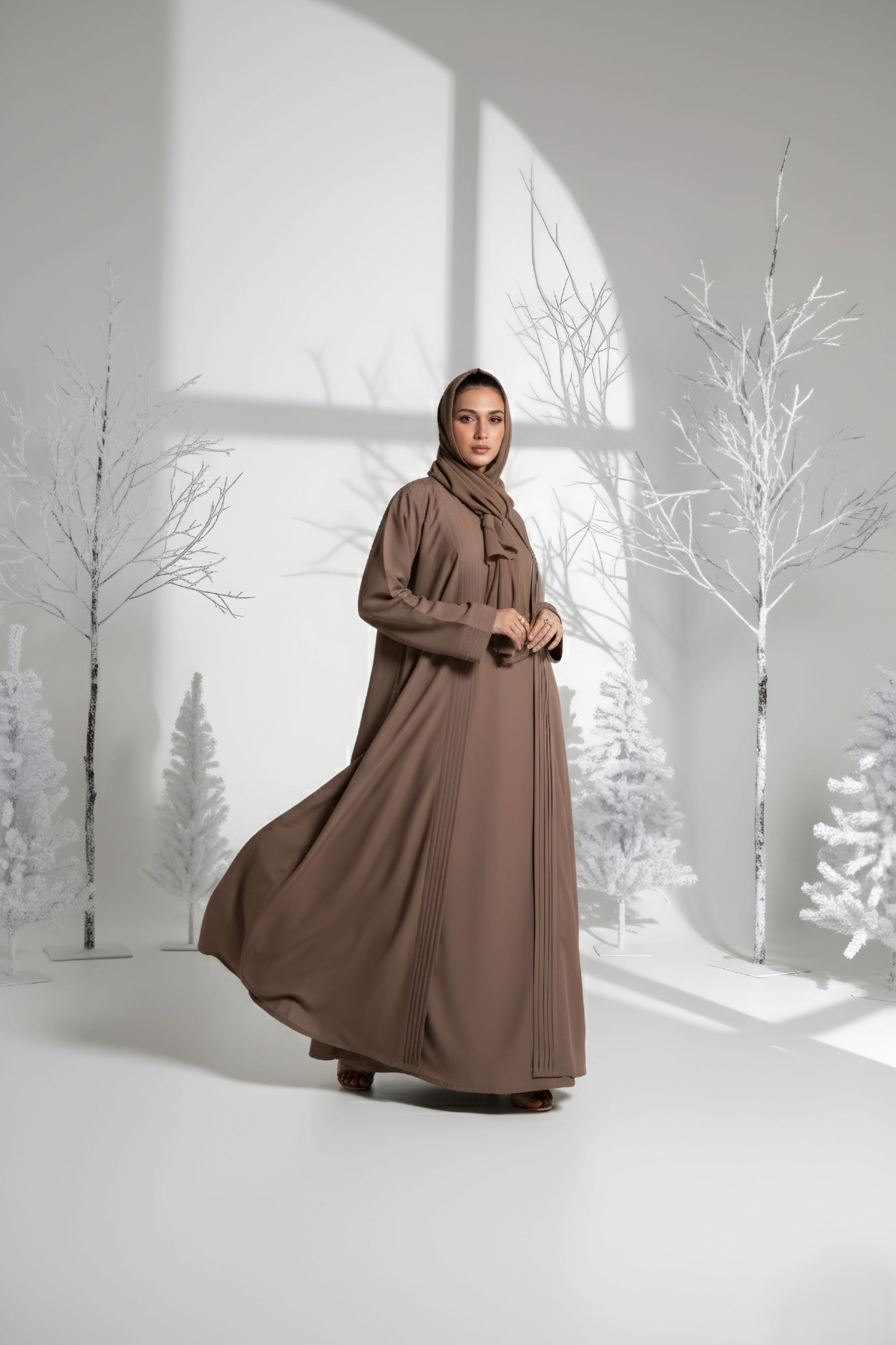 Coat-Inspired Cut: Structured yet modest design that brings a modern touch to traditional styling.