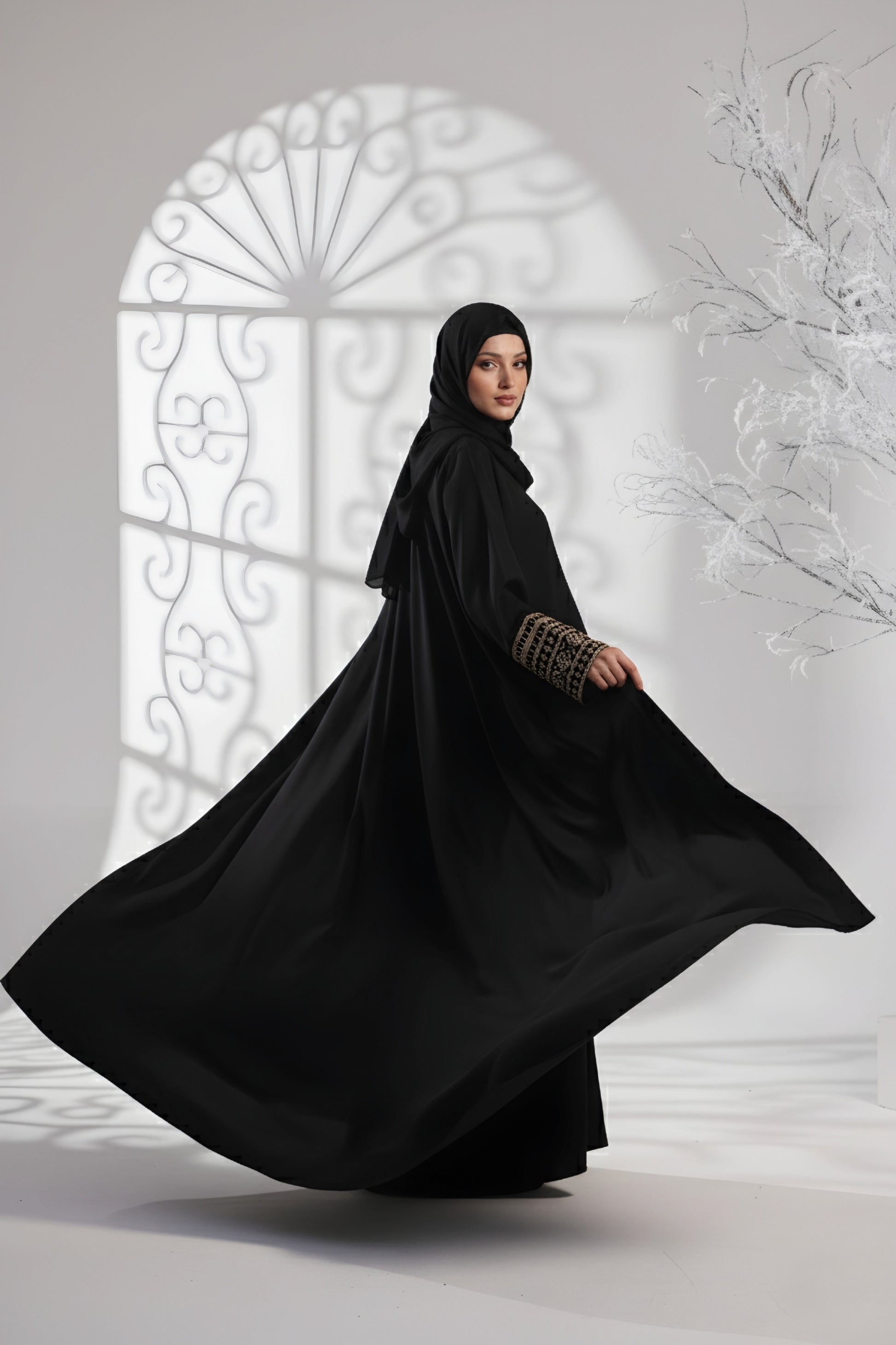 - Black Color: A rich and elegant shade that enhances the regal appeal of this abaya.