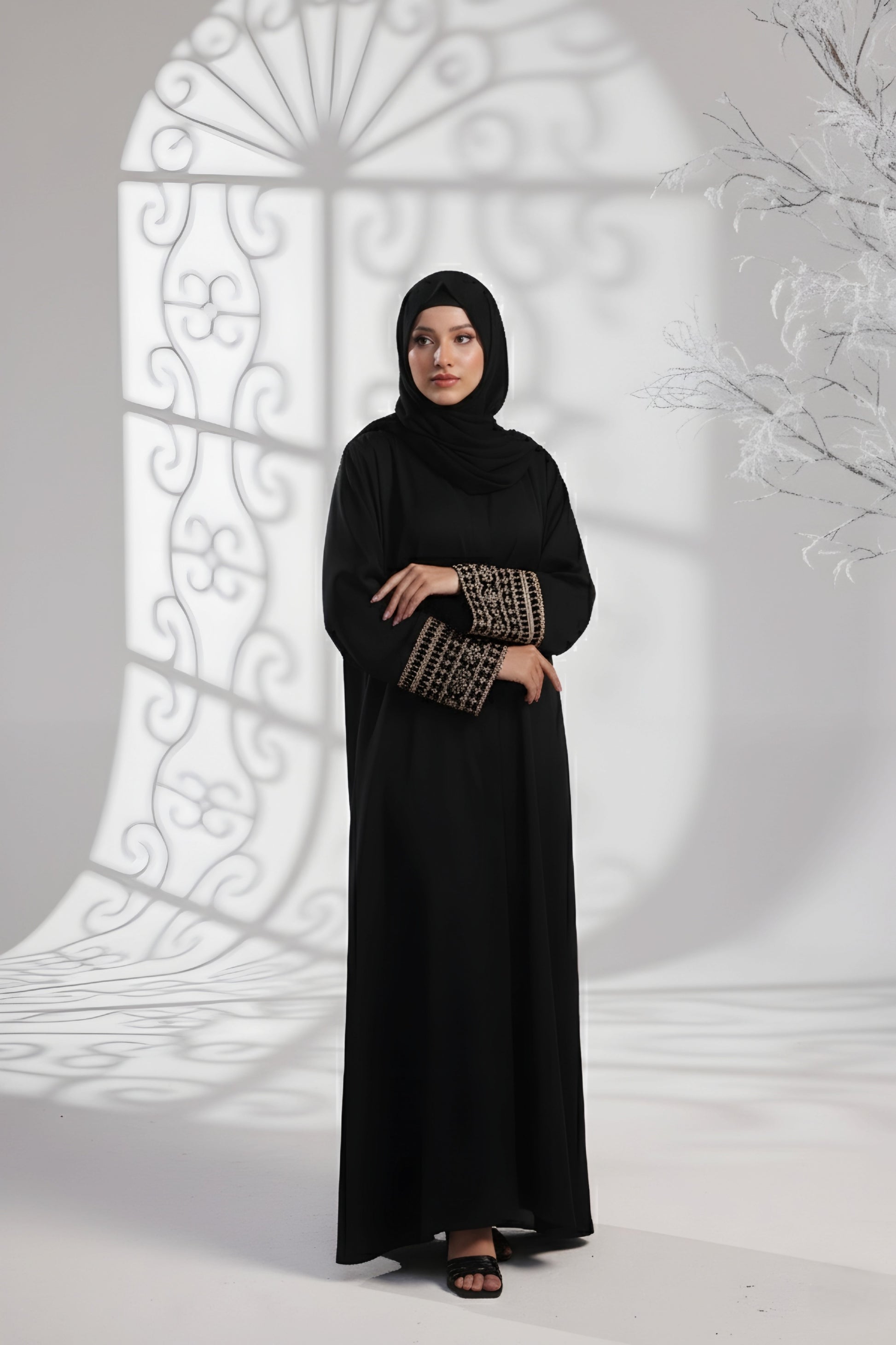 - Exquisite Detailing: The black embroidery elevates the abaya’s elegance, making it perfect for special occasions.