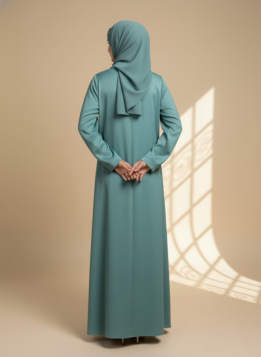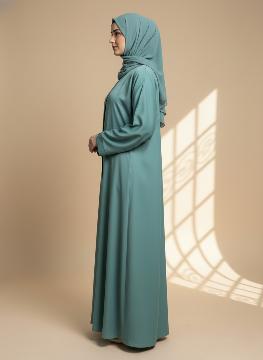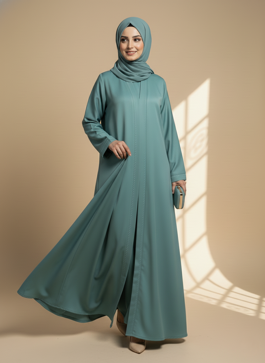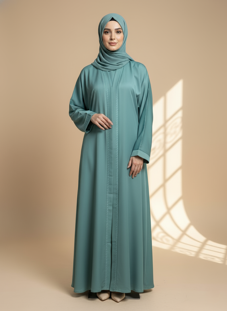 The Sky Muse Abaya captures the calm elegance of a clear sky — soft, graceful, and effortlessly stylish. Its refreshing tone and flowing silhouette make it a standout piece for any occasion.