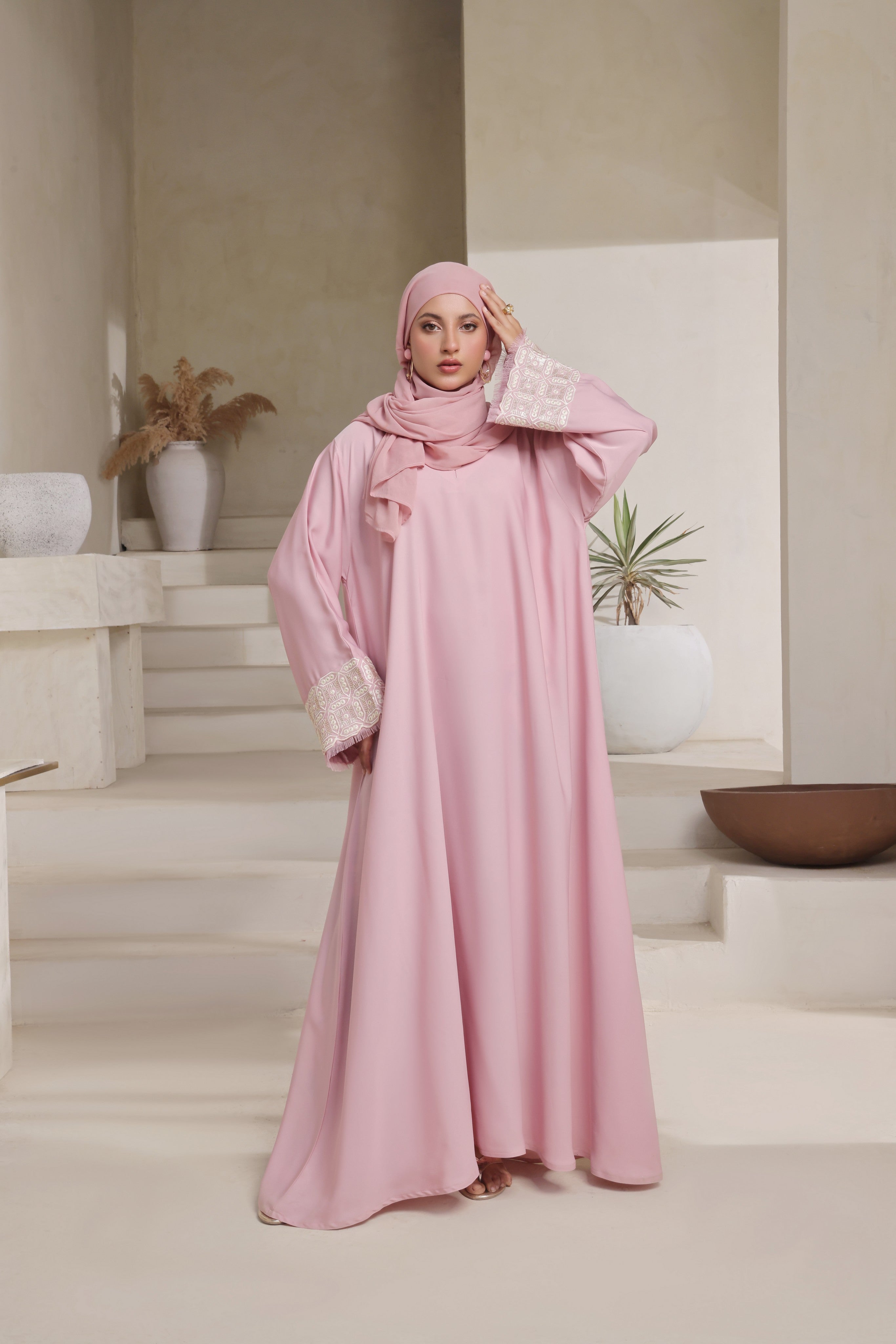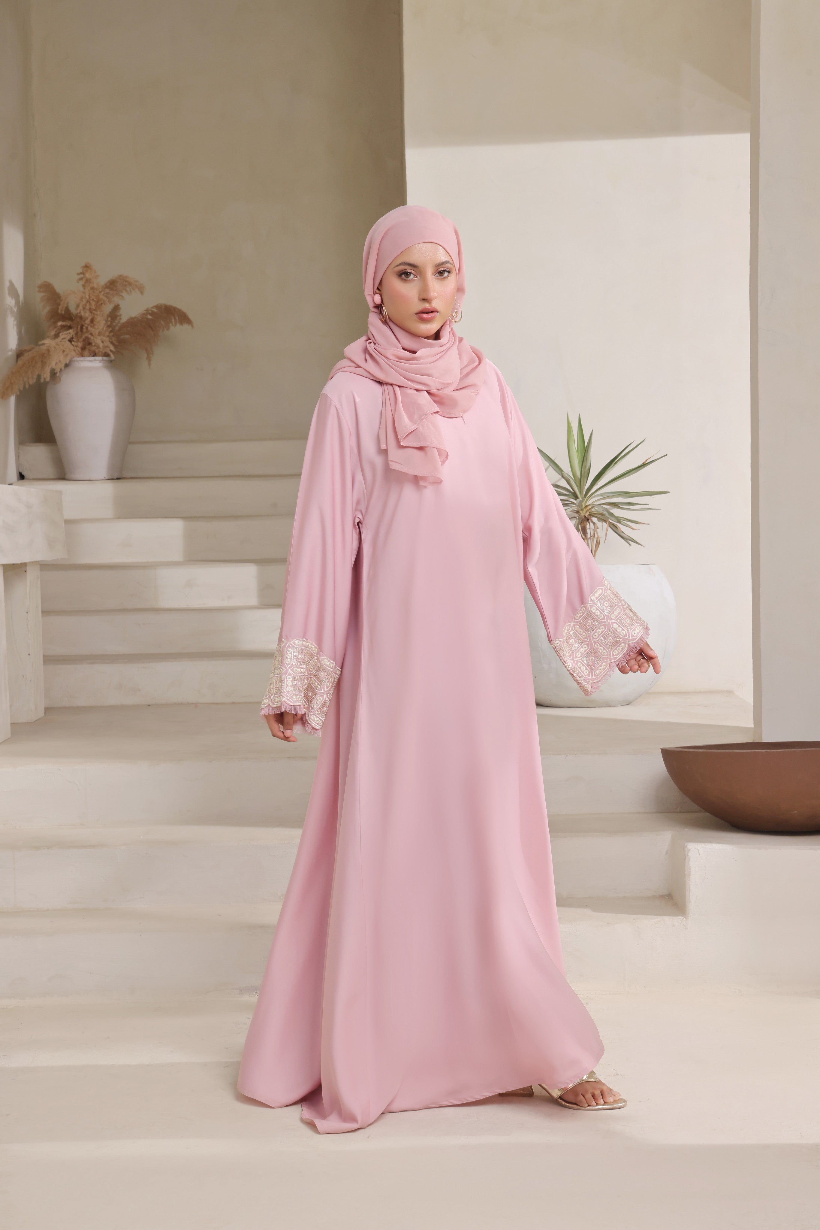 Step into timeless grace with the Blush Elegance Abaya – where everyday wear meets refined beauty.